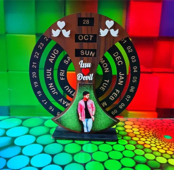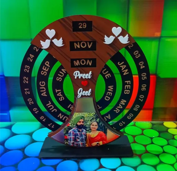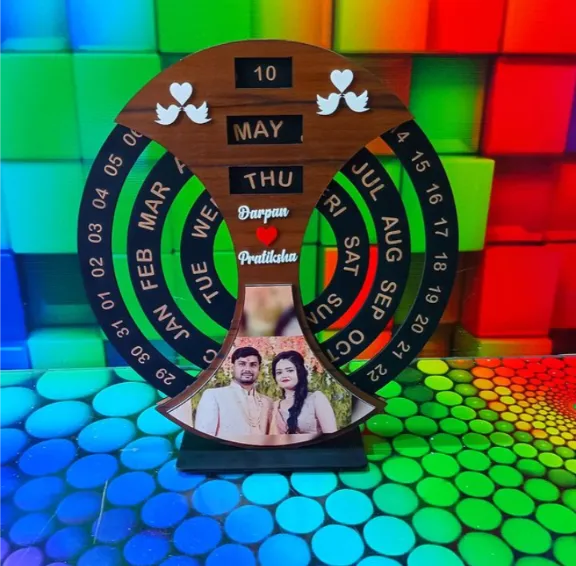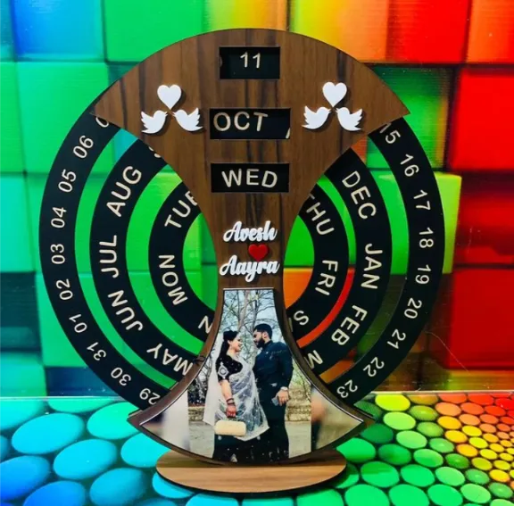 A beautifully crafted, personalized wooden forever calendar, perfect for keeping track of special dates and memories.