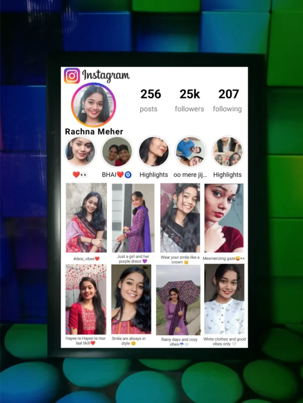 Create a trendy and modern Instagram-style photo frame featuring your favorite picture, personalized with name, date, and custom details. A perfect gift for birthdays, anniversaries, and special occasions.