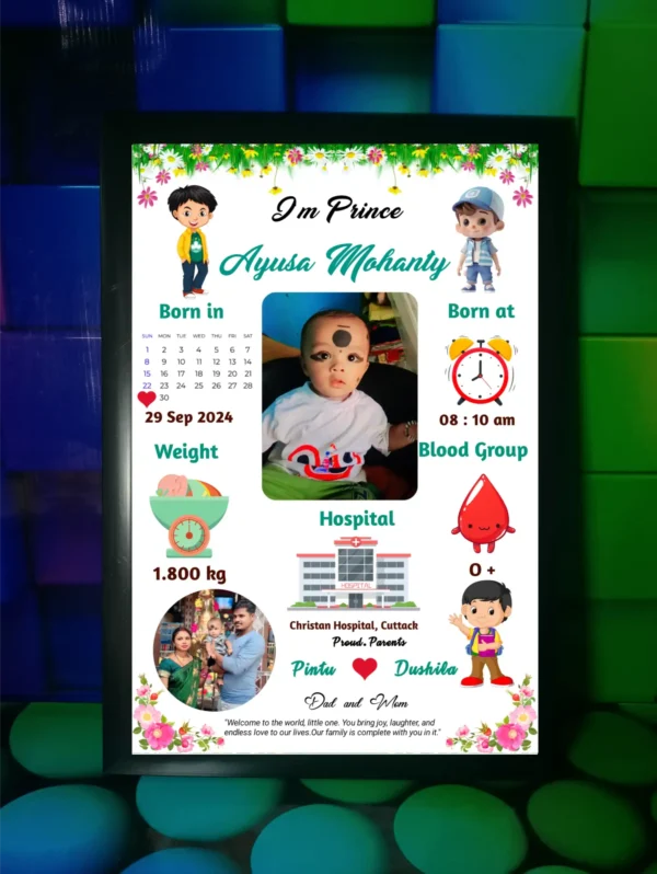Personalized Newborn Baby Boy Frame with Photo | Naming Ceremony Gift